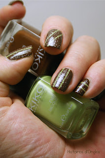 Ce que j'en ai pensé ? Pose facile comme beaucoup de Kiko, 2 couches pour le vert, sans quoi il reste translucide, quand "au chocolat au lait", ben oui c'est son nom, une seule couche. Séchage normal. J'ai terminé avec mon top coat pailletté déjà présenté ici. Je l'aime beaucoup , il habille une manucure simple ou pas, les paillettes ultra fines ne laissent pas l'ongle rugueux au toucher et la quantité de paillettes déposées est juste parfaite.