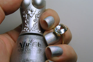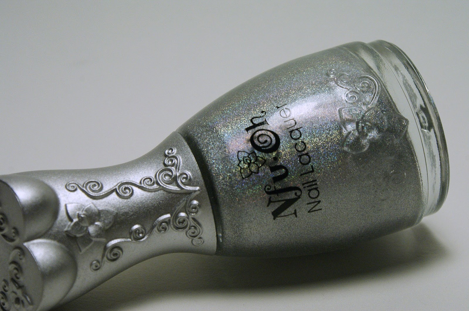 Un gris clair holographique (plus clair que celui de Kiko) mais qui une fois posé, a des reflets "aigue-marine" :