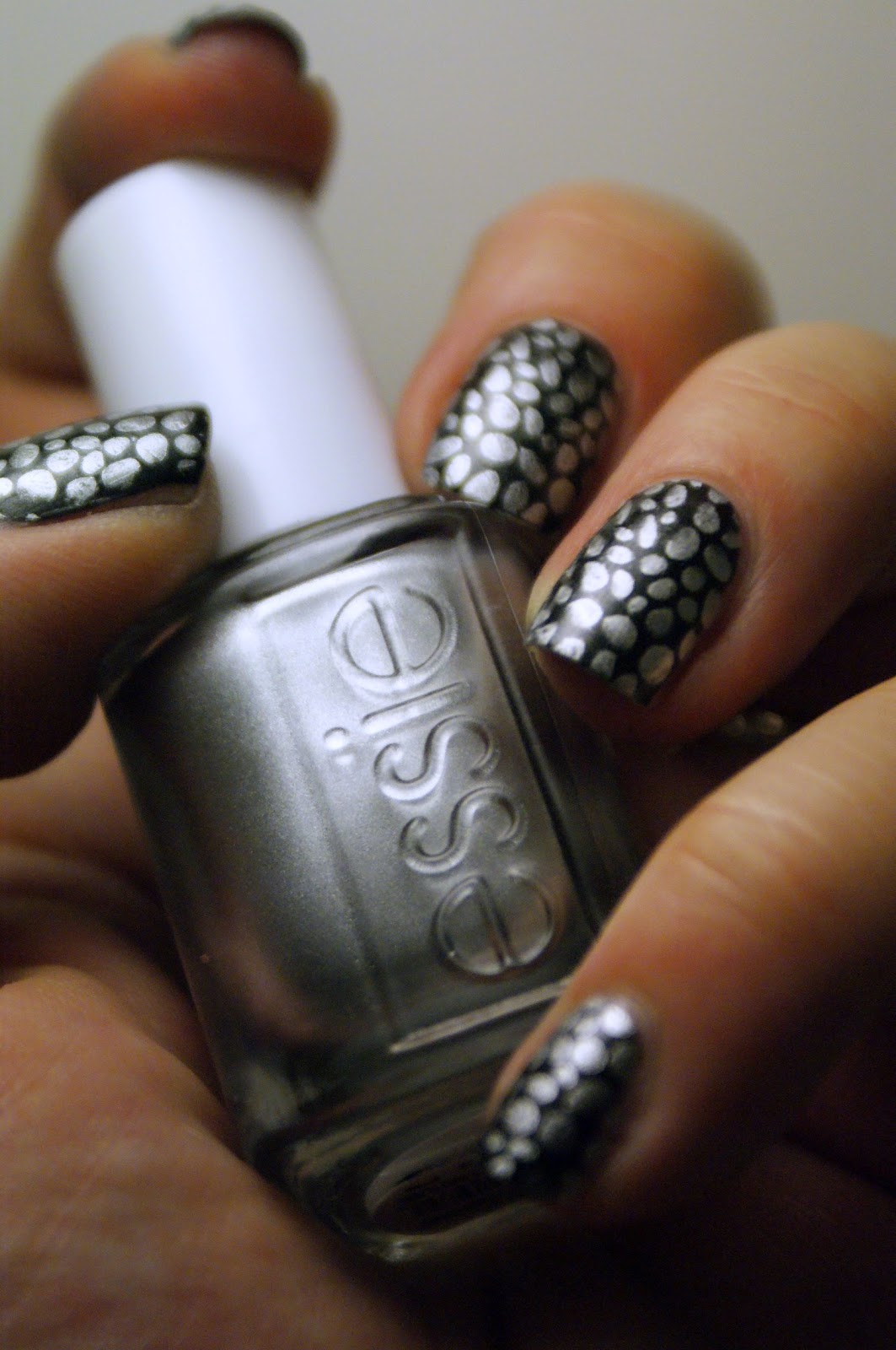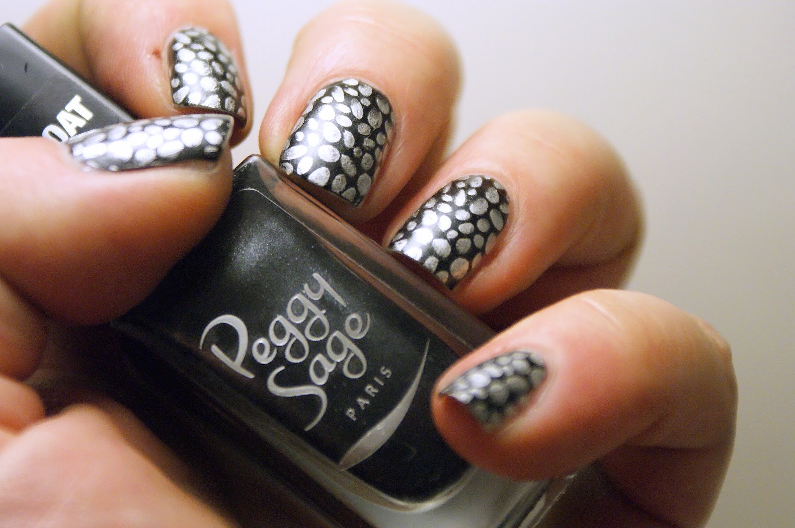 Envie de ressortir mon Essie "No place like Chrome" pour un stamping rapide et facile. Pour le faire ressortir, je l'ai posé sur mon très adoré Peggy Sage "Grey Deluxe". Et regardez-moi ce luxe, des ongles prêts en moins de temps qu'il n'en faut pour le dire et une impression très Chic (enfin, c'est mon avis) :